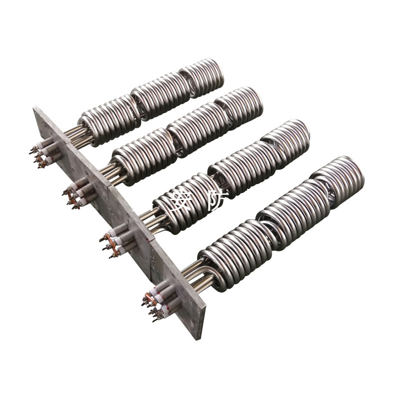 法蘭電熱管(也稱插入式電加熱器):是采用U型管狀電熱元件,多支U型電熱管焊接在法蘭上集中加熱,依據(jù)加熱不同介質(zhì)設(shè)計(jì)規(guī)范,按照功率配置要求裝配在法蘭蓋上,插入需加熱物料中,發(fā)熱元件工作時(shí)所發(fā)出的大量熱量傳導(dǎo)給被加熱介質(zhì)使介質(zhì)溫度升高,達(dá)到所需的工藝要求,主要用于敞開式、封閉式的溶液箱和循環(huán)系統(tǒng)中加熱用。