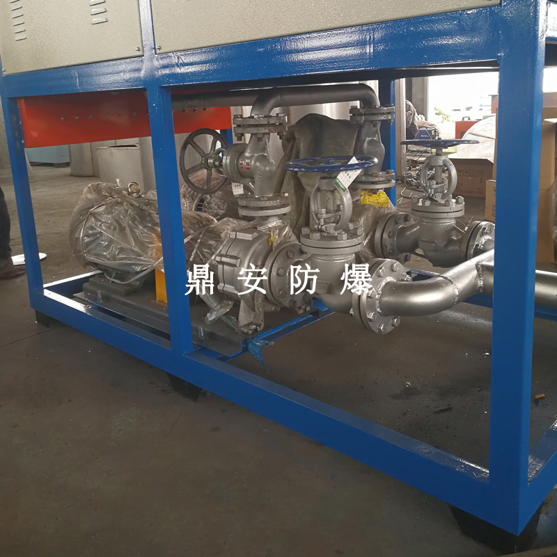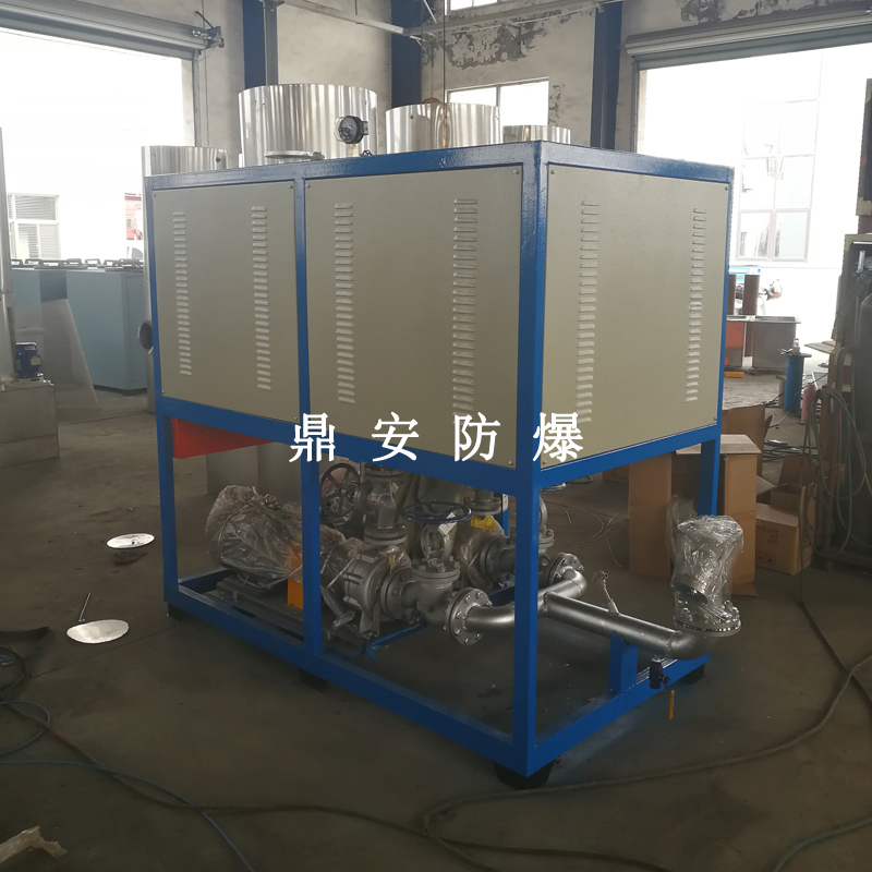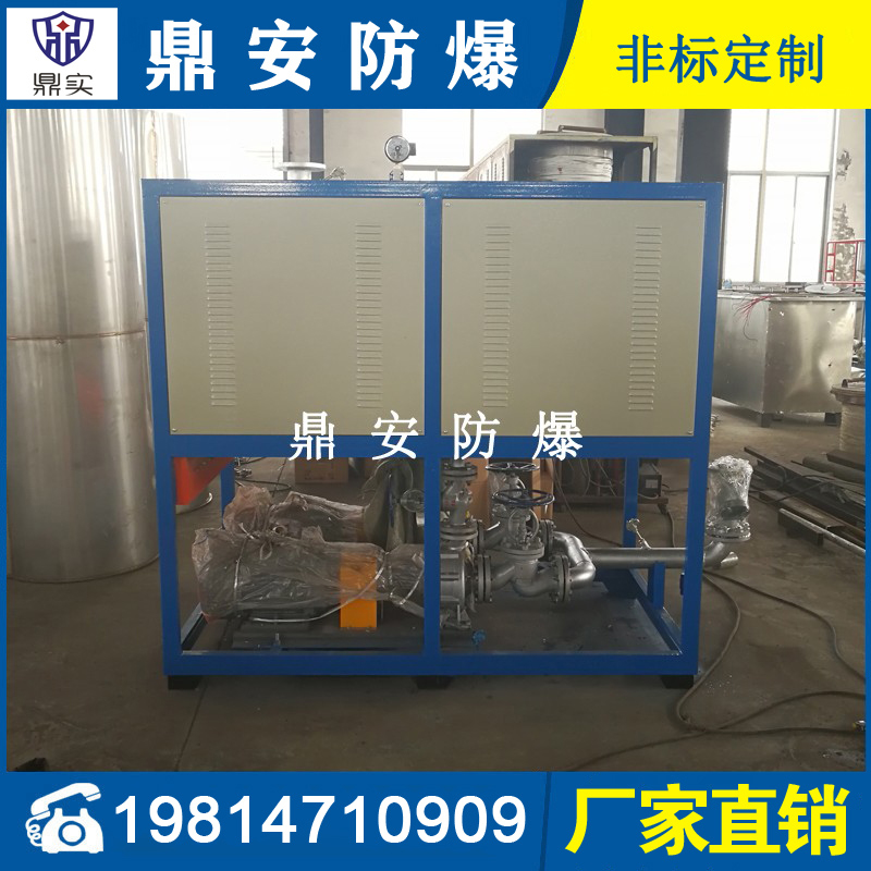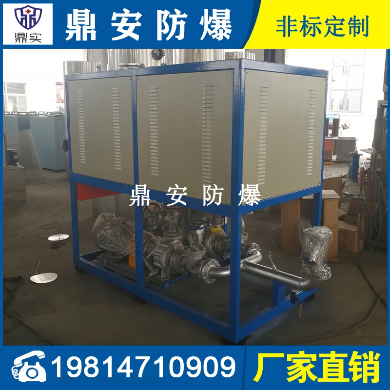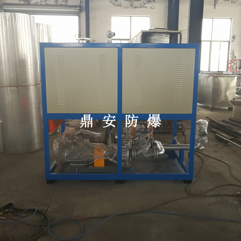 導熱油加熱機組(又稱電加熱導熱油爐)由防爆電加熱器、有機熱載體爐、換熱器(可配置)、控制柜,熱油泵、膨脹槽等組成一個整體的系統(tǒng),用戶只需要接入電源、介質的進出口管道法蘭及一些電氣接口即可使用。具有完備的運行控制和安全監(jiān)測裝置,能實行自動化控制。能在較低的運行壓力下獲得較高的工作溫度。